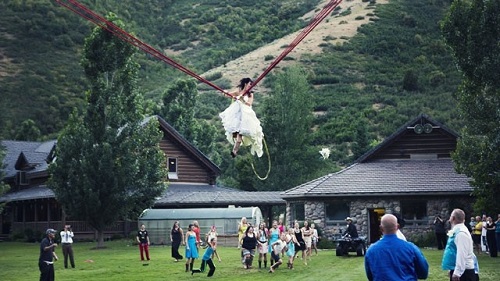 - This seems both brilliant and highly dangerous! Watch –> Bride Uses Human Slingshot To Toss The Bouquet